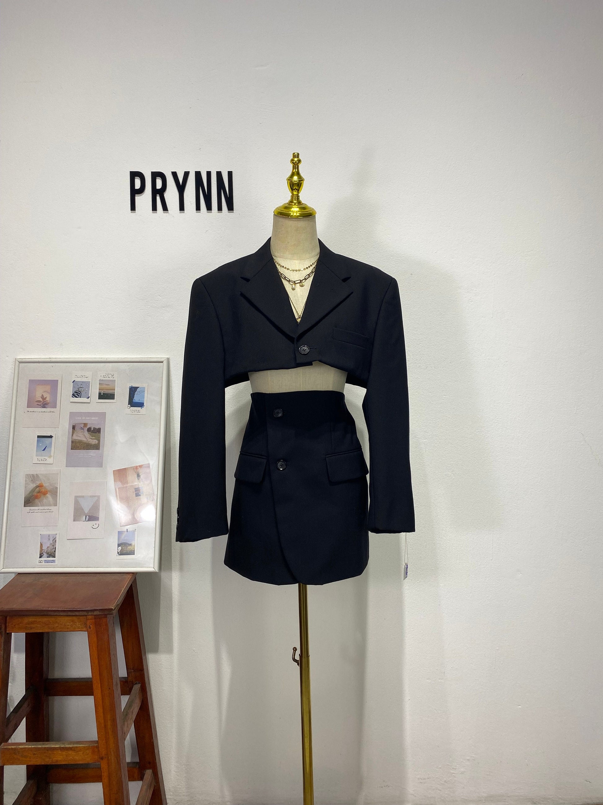 Reworked long sleeve blazer set, cropped blazer set skirt.