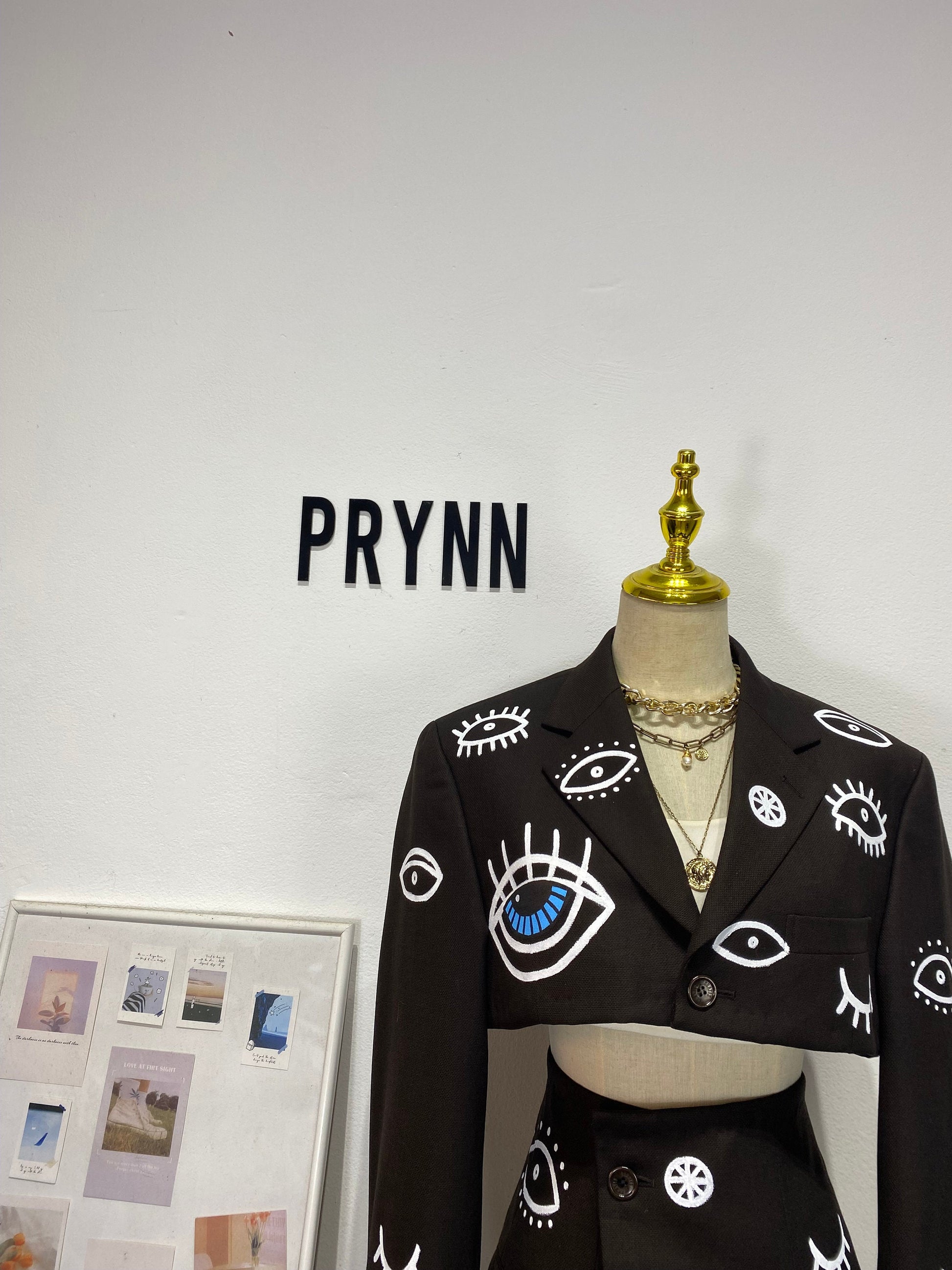 Reworked long sleeve blazer set, cropped blazer set skirt. Hand painted (washable)